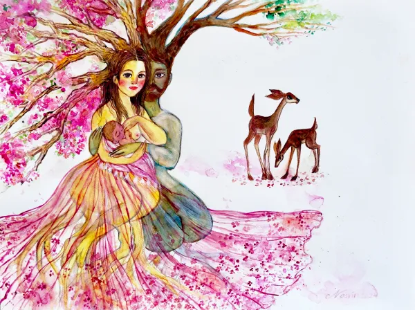 Our Tree is a vision of love rooted in nature, of motherhood nourished by affection, and of living in harmony with earth, animal, and light.